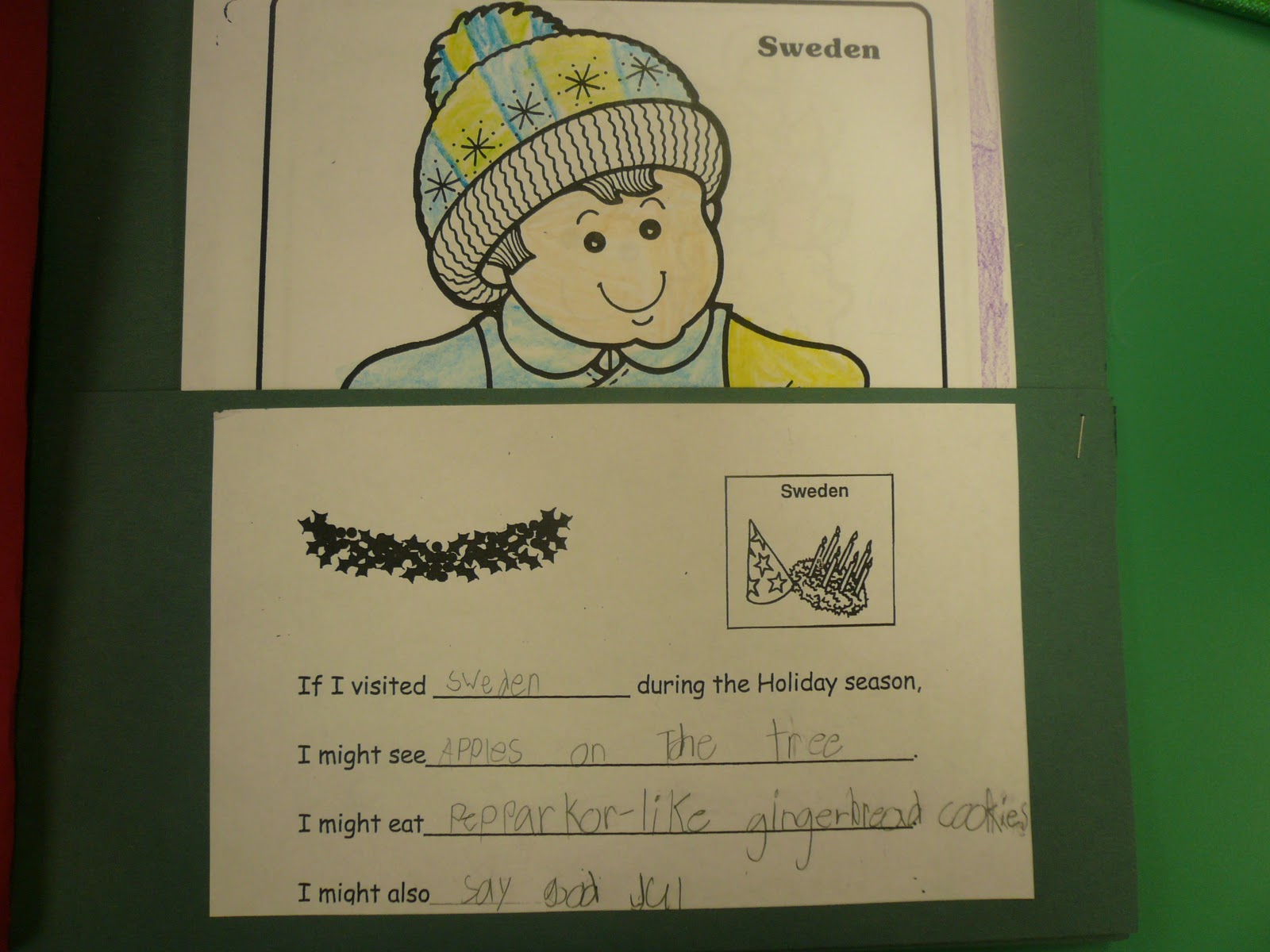 (Inside the pocket book. We fill out the half sheet at the end of each visit to the country and then glue it on the pocket. All crafts, etc. from the country go in the pocket.)