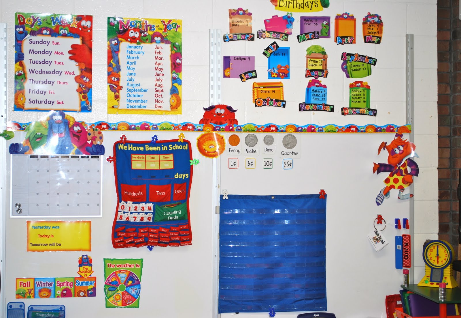 Your room looks great and I love the monsters. I have been trying to figure out how to use those cute little things too 🙂 I love your cabinets under your guided reading table- I think I may try that.