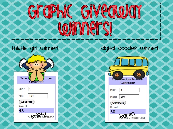 Thanks to everyone who entered the graphic giveaway. The random number generator thingamajig chose two lucky gals! I don’t have your emails so please email me at [email protected] and I’ll put you in touch with Ashley and Kirsten for your collections.