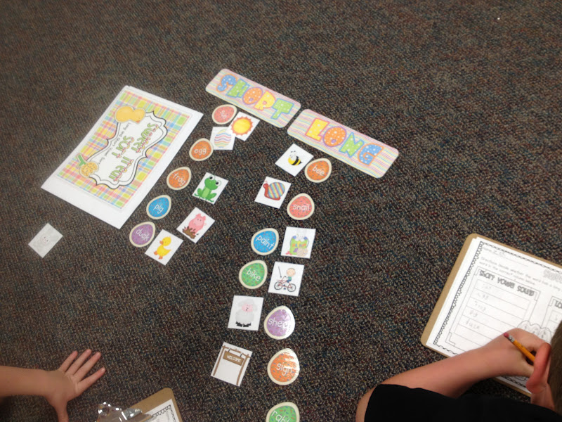 2. I’ve had quite a few emails about how centers work in my room. I have 6 centers each week. Math, Word Work, Sight Word, Book Center, Poetry Center and Listening Center. My students get their center checklist on Monday and choose a center. I don’t worry about who goes where, they know that if a center is being used, they need to choose another. I try to make several copies of one center, so there are plenty to go around. This week, students did a long and short vowel sort for Word Work center. I made 3 copies of this center and they can work in partners, so 6 students could be completing this center at once. I also have three Leap Pads, 3 iPods and 1 iPad. If they go and get a listening center recording sheet and all of these listening devices are being used, then they need to choose another center. Students get the recording sheets and centers located in one of my 6 center bins. They keep their center recording sheets in a folder in their chair pockets when they complete them. We do centers 4 days, Monday through Thursday and students must get 4-6 centers completed each week. Students who get 6 centers completed correctly and neatly get a special incentive. I also choose work that is especially well done for our “Beautiful Work” board and those students get to choose a treat on Friday. I try to make all of my centers hands on and interactive, but also insist a recording sheet is included for accountability and assessment of progress. On Thursdays my students turn in their center checklist and completed center recording sheets and I paper clip their papers together so I can look over them. On Friday, I hand back their packet, which is a very big deal, as treats for great work are announced.