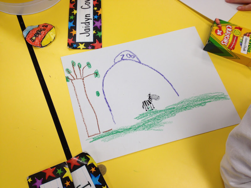 We are now learning about how every story has a setting, and that good writer’s show their setting through their words.  Today we introduced setting and then students were given an animal sticker. The students were asked to use that sticker and create the setting where that animal would live. This was my teaching partner Ashley’s idea and it was genius! The kids really understood setting. After about 5 minutes, we ended the activity and I told them that their reader’s should be able to read their story and draw a similar picture just by reading their words.  We read a book and discussed how the author developed their setting. We’ll continue to look at literature and the ways authors show their setting through words. They are doing an awesome job!