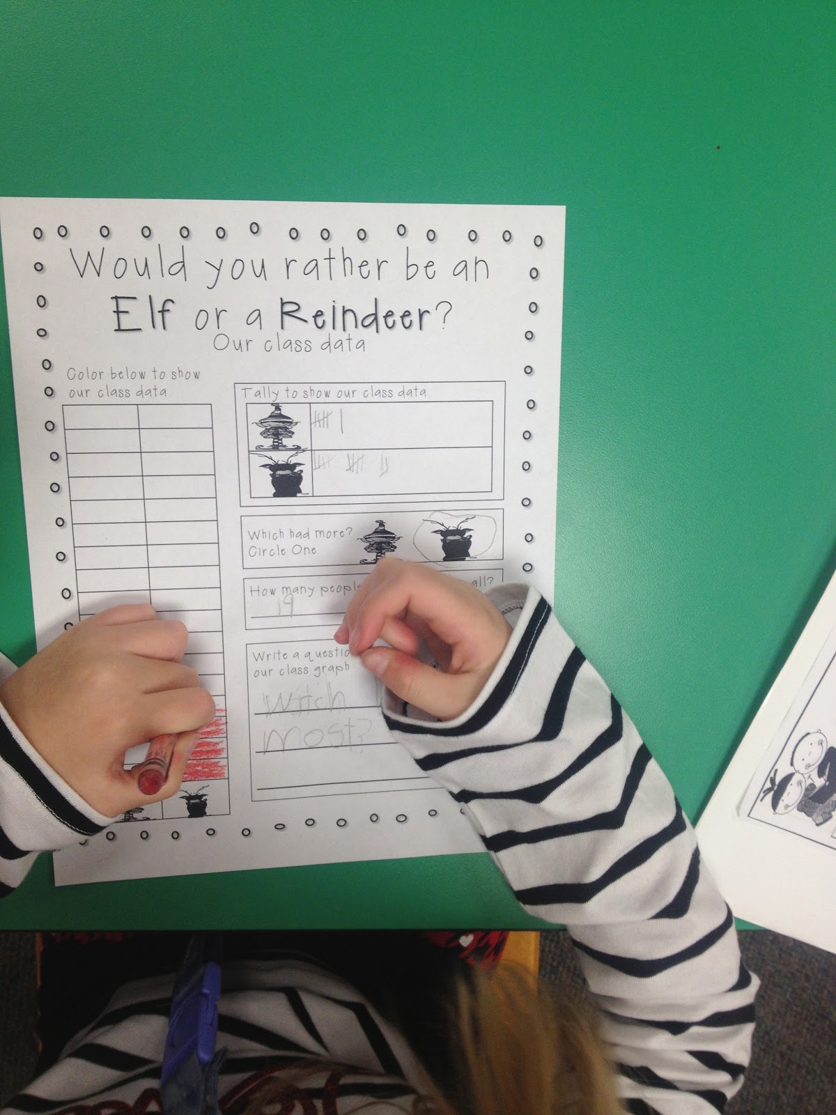 Our math unit last week was on data. So we did the following graphing activity from my elf unit.