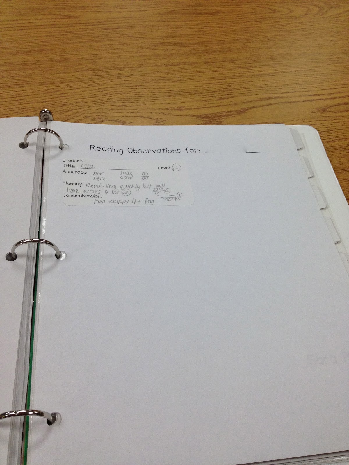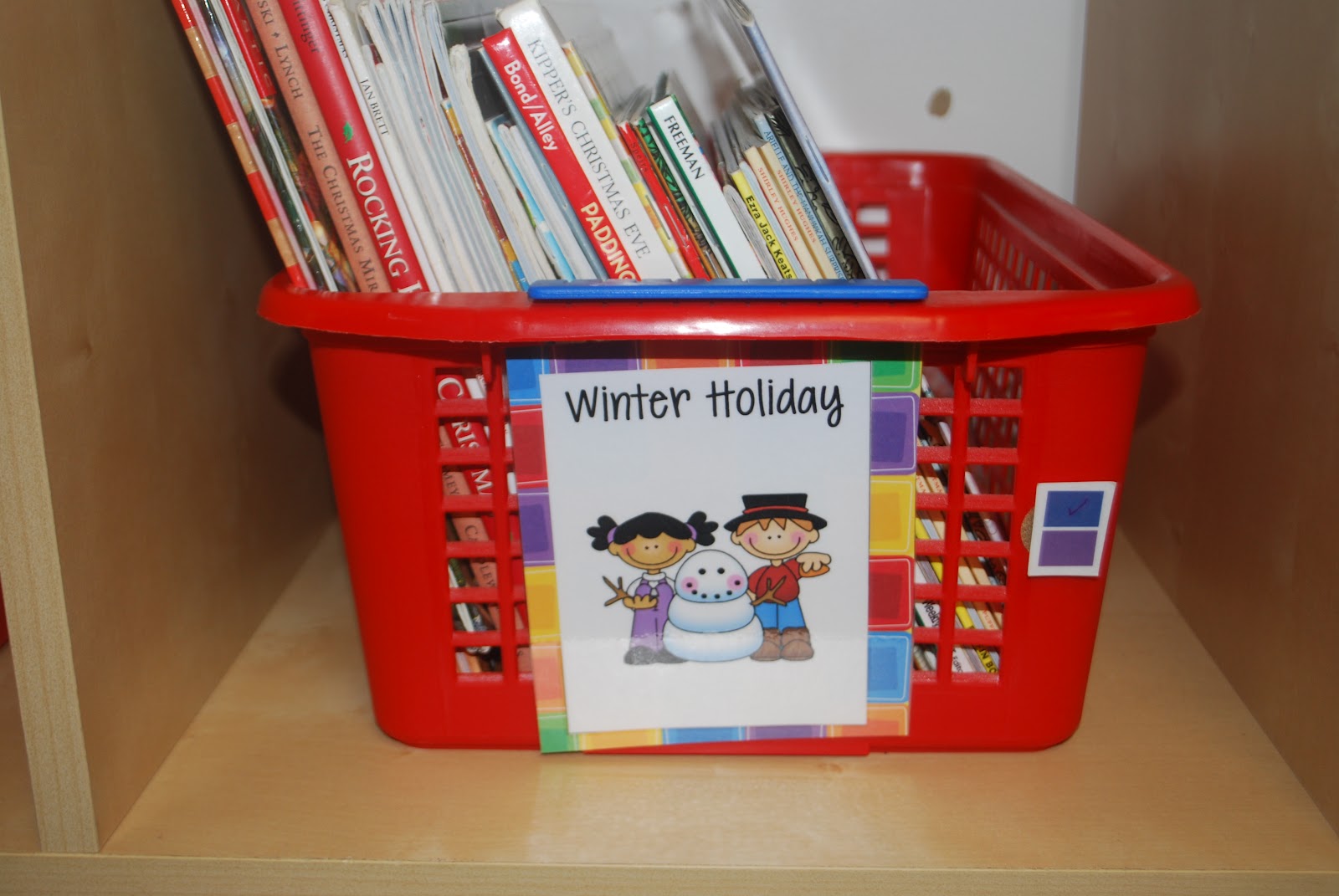 Each of my books has a sticker inside that matches my labels. Â This way students can put the books back in the proper basket.Â