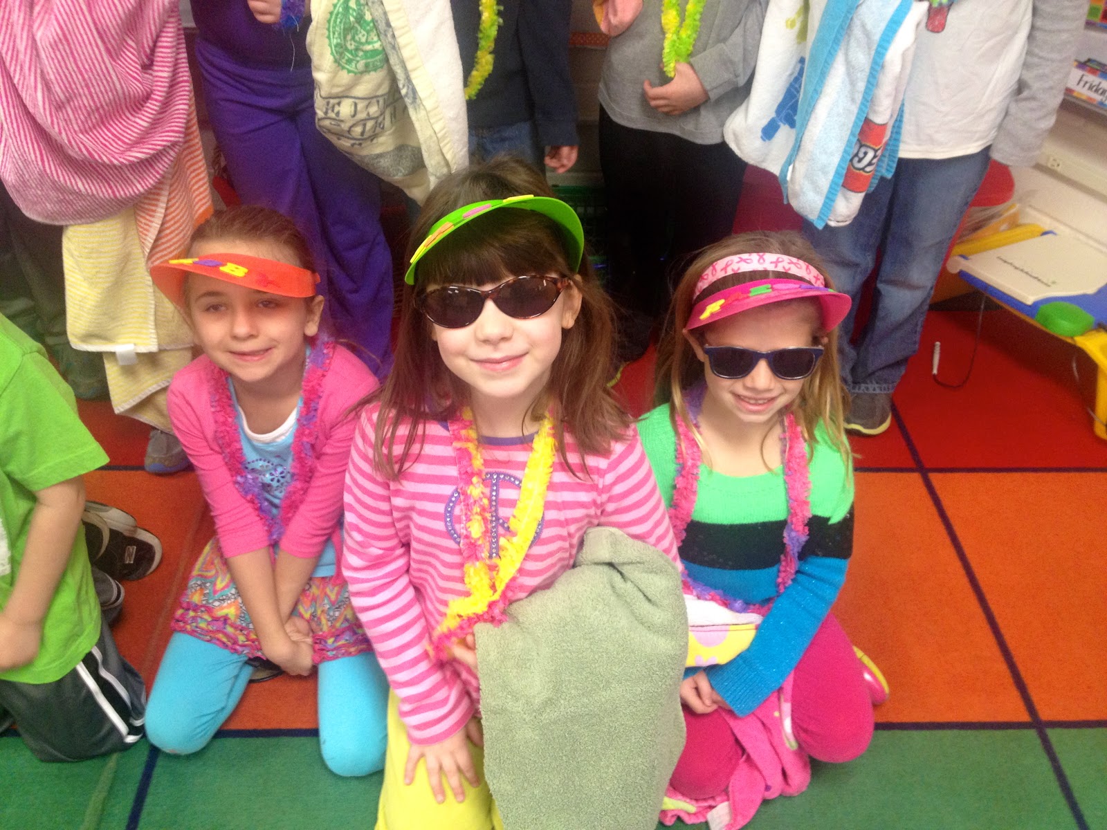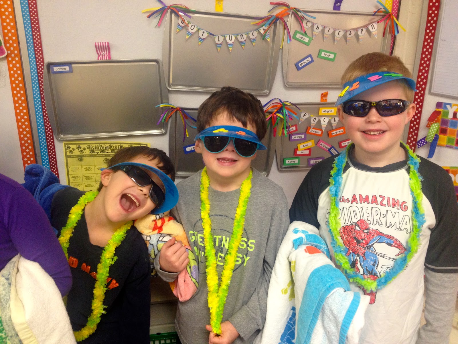 My kiddos earned a classroom reward right before spring break, so we had a beach party. Talk about fun. Â We did beachy activities all day long. Â I gave each kiddo a lei as they entered the room. Then they decorated visors with their names.