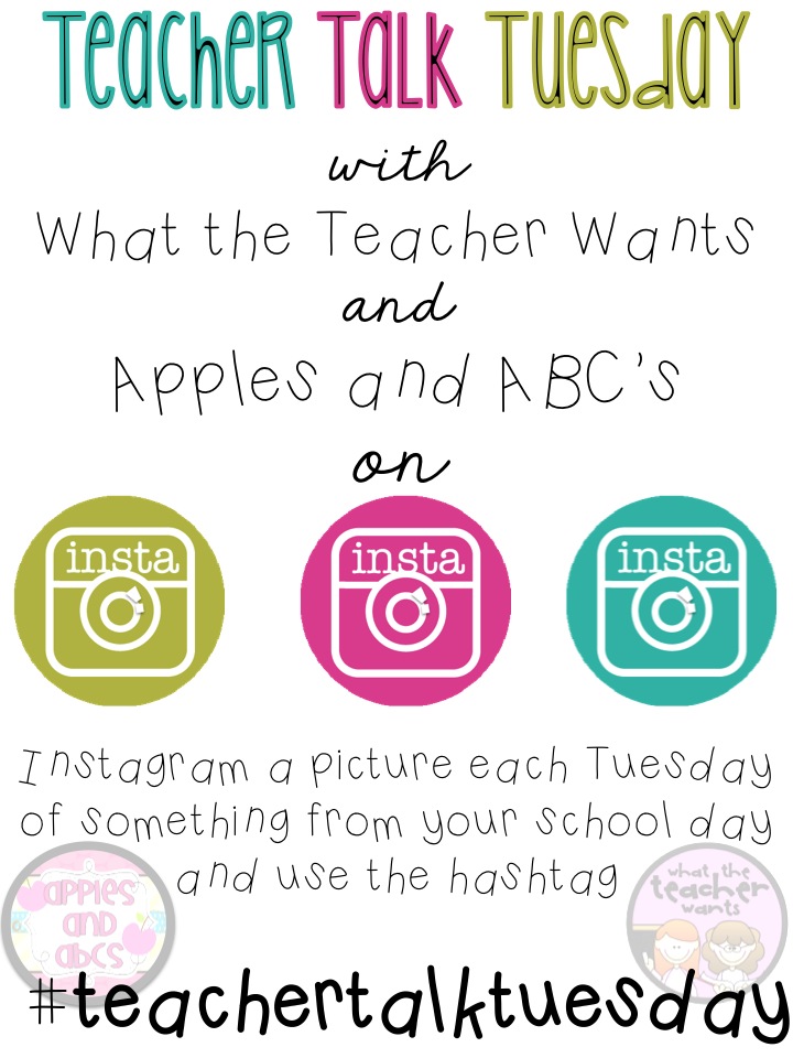 Have you all heard about Teacher Talk Tuesday? What the Teacher Wants and Apples and ABC’s thought of a genius idea. Each Tuesday teachers will post something fun going on in their room on their Instagram accounts. You just include the hash tag #teachertalktuesday after your picture. Fabulous in First is on Instagram, so don’t forget to follow me. You can follow by clicking the camera below.