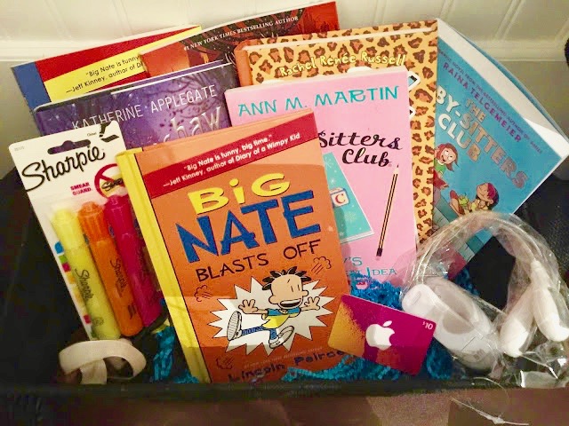 In addition to theme days, our author and buddy reading, we also gave away 10 dollar gift cards to Barnes and Noble for students who were caught reading when they weren’t expected to be reading. We also had 2 lucky winners for these baskets as well. Students guess the number of “bookworms” in the jar and won these.