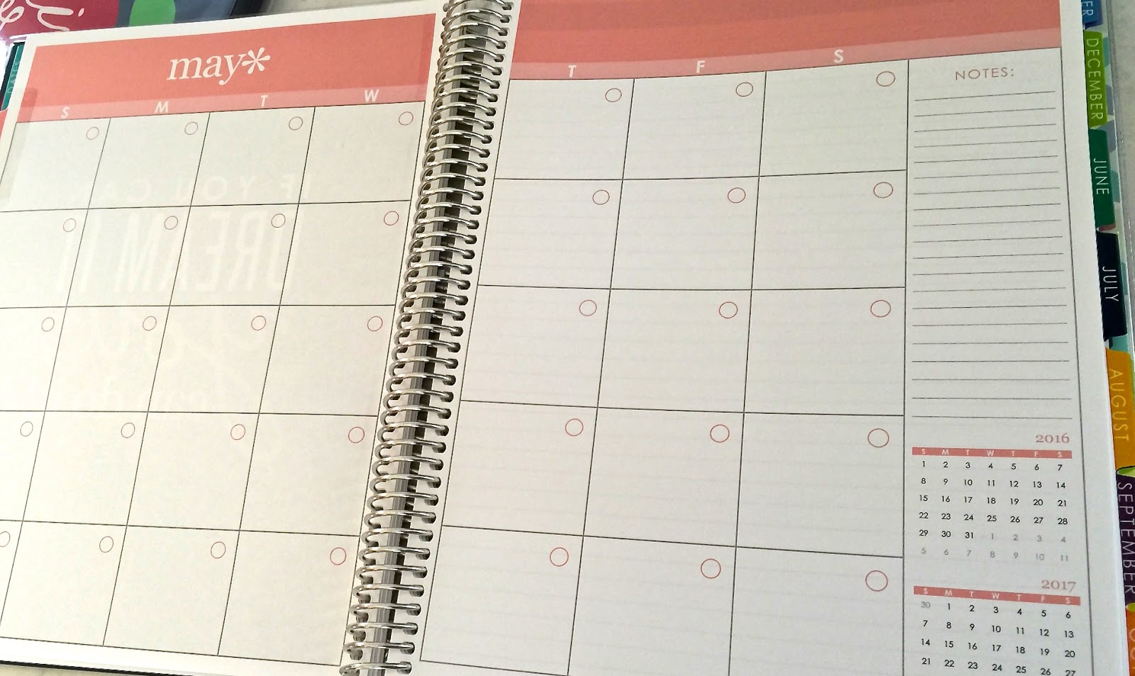 If you have a planner, some of these pages might look familiar to you. They have added more pages for notes. In addition, there are these adorable two sided pockets, and a new wet erase list at the back, which I love!