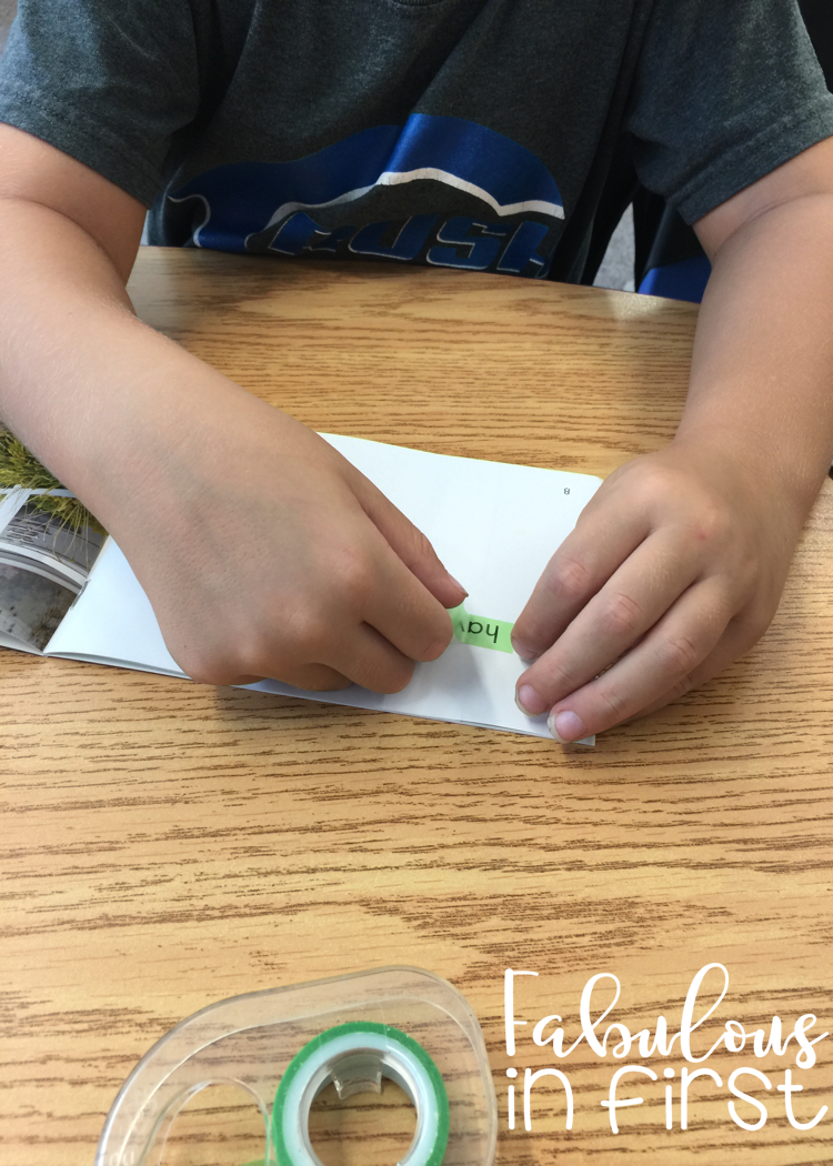 We often use this tape to search for sight words or tricky words I may point out during a predict and locate before reading.